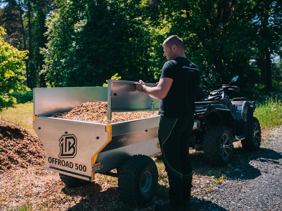 Rimorchio per ATV/UTV OFFROAD TRAILER 500 adatto all'uso con la maggior parte degli ATV e UTV, nonché con trattori compatti.