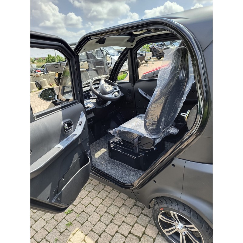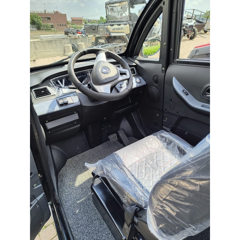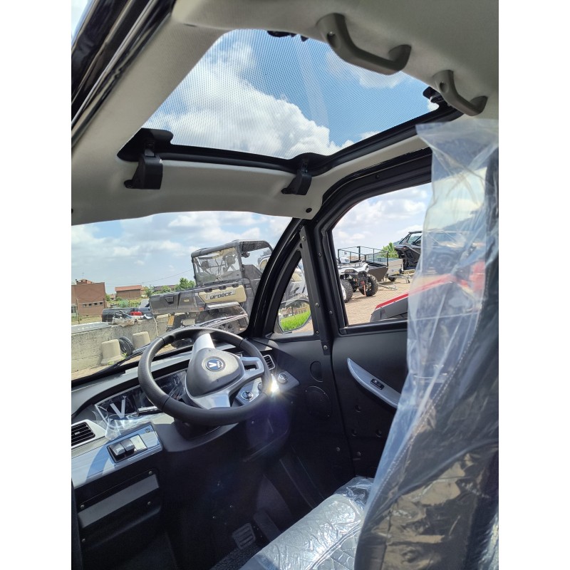 La struttura robusta del cabinato elettrico assicura la sicurezza degli occupanti. I materiali di alta qualità utilizzati nella sua costruzione garantiscono una protezione affidabile sia in caso di intemperie che di eventuali impatti. Inoltre, il cabinato è dotato di un sedile girevole e pieghevole che facilita l’accesso e l’uscita per le persone con mobilità ridotta.