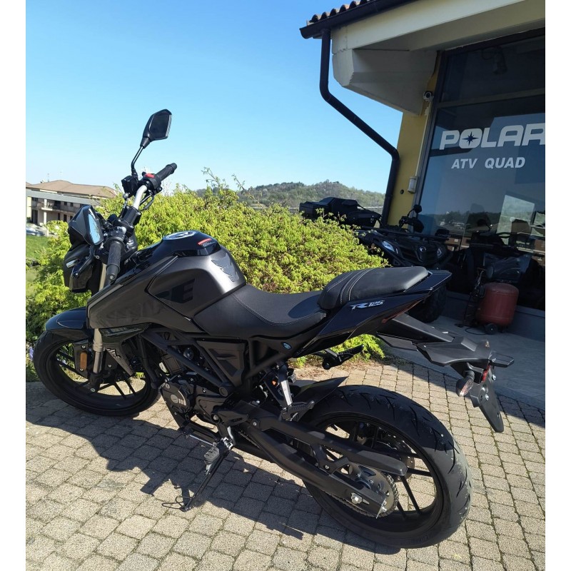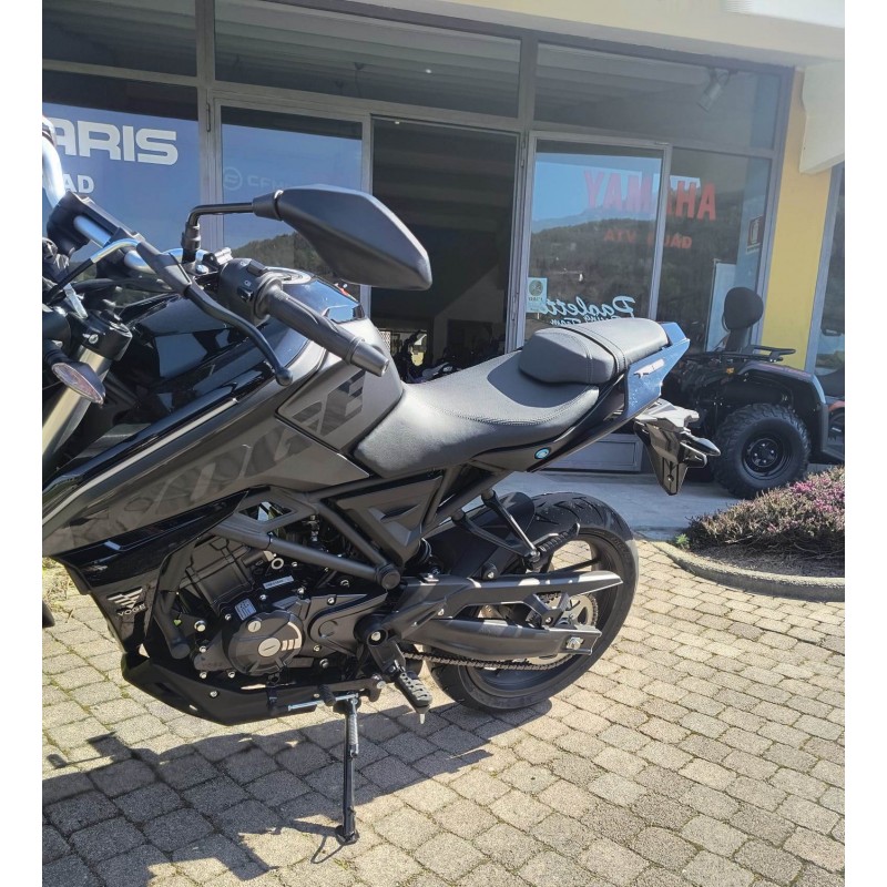 Completano il design la sella del pilota studiata per garantire la massima abitabilità ed ergonomia, e quella del passeggero, che pur non interferendo con le linee slanciate della moto, offre una superficie ampia e comoda. Le ruote in lega da 17” con wheel stripes gialle o azzurre rendono ancora più visibile e appariscente questa piccola 125.