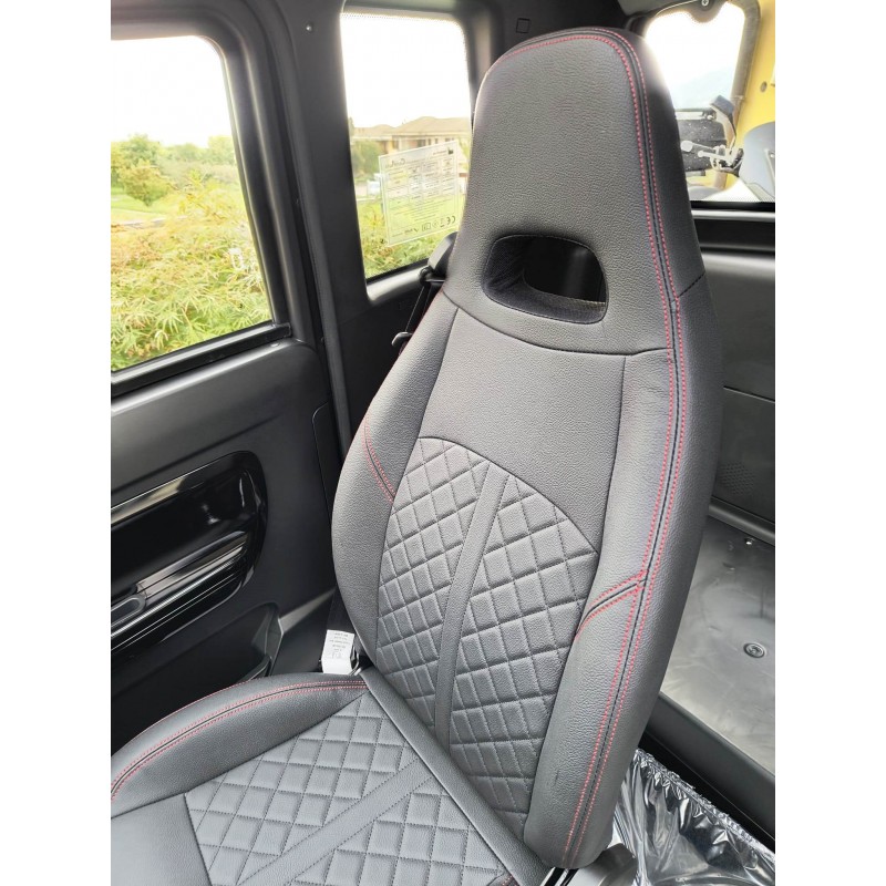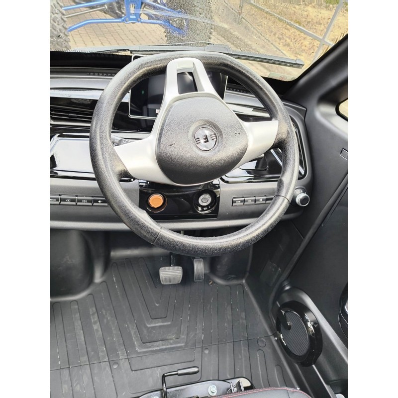 Il sedile di questa minicar senza patente è in ecopelle; può essere spostato avanti e indietro e ruotato sia a destra che a sinistra per agevolare la salita e la discesa. Lo schienale reclinabile, invece, consente di caricare più facilmente il vano posteriore.