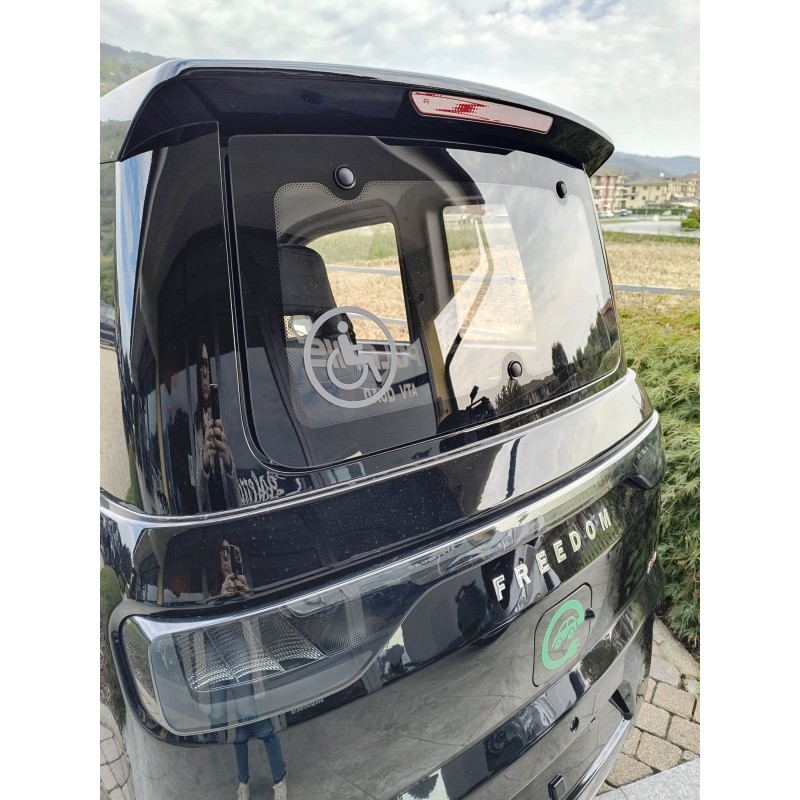 Le porte del Freedom EVO sono molto ampie e consentono di salire e scendere senza alcuna difficoltà, mentre l’abitacolo è curato e spazioso, con un vano posteriore - utilizzabile come portabagagli - in cui è possibile caricare anche un deambulatore.
