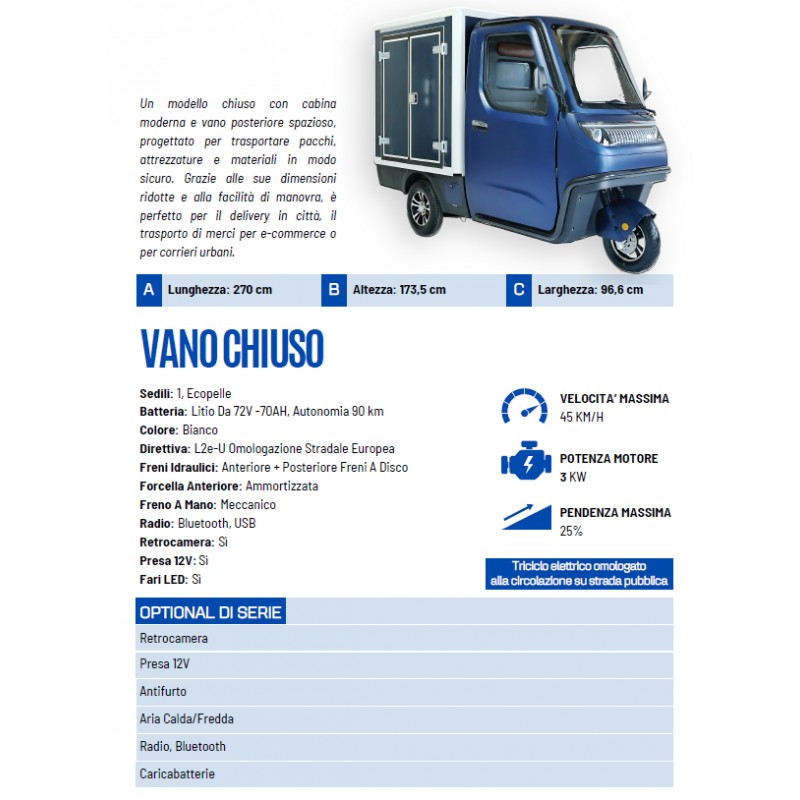 FURGONE CASSONATO TIPO APE ELETTRICO VITALE E-GO